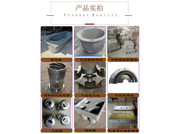 生产设备:树脂砂铸造、覆膜砂铸造、失蜡铸造、中频电炉、炉前分析仪、退火炉等。